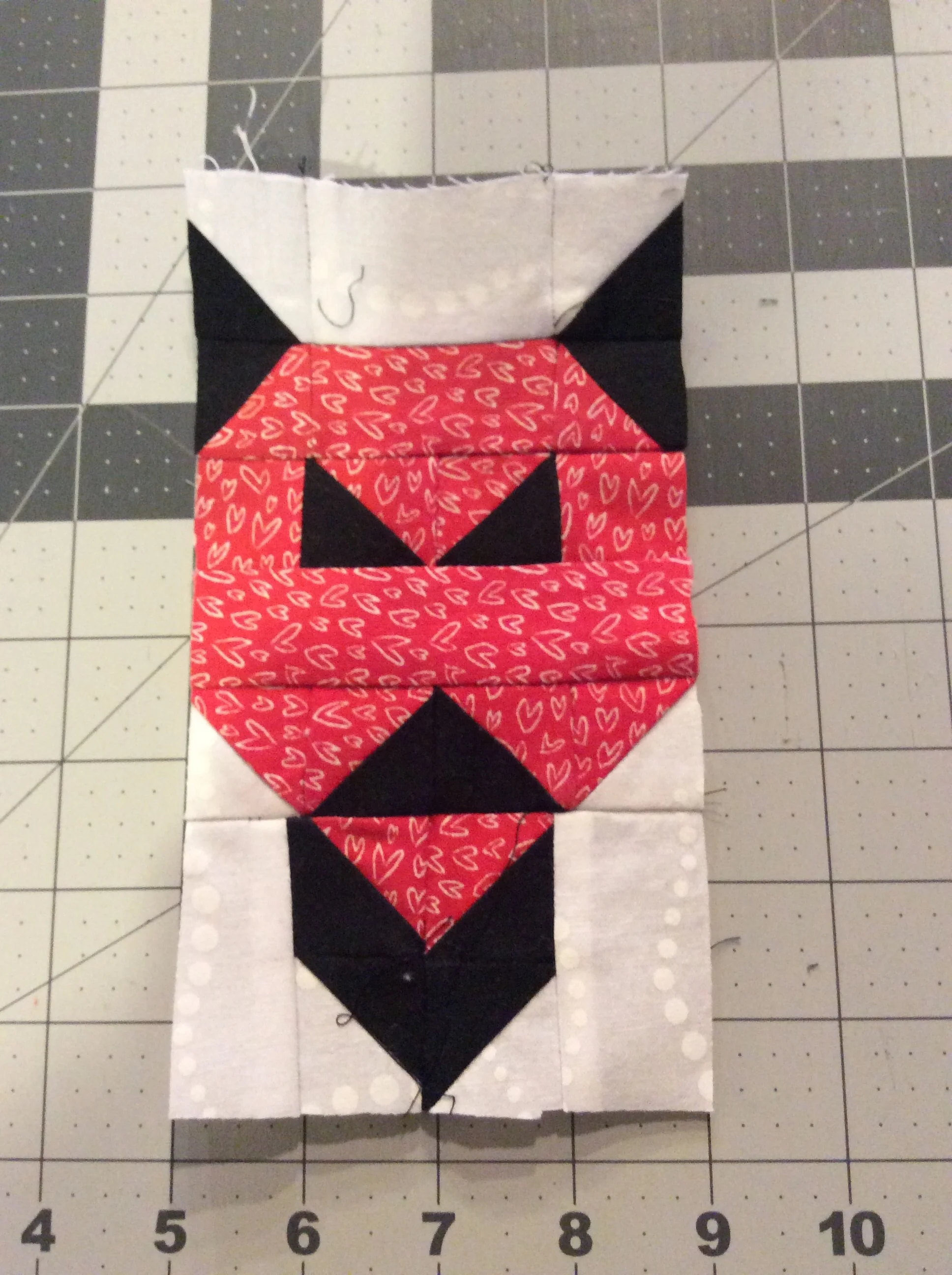 So Halloween coming up has a lot of possible patterns on my mind. Today I worked on a new one to get it drafted to contemplate. It didn't come together quite as well as the skull, but the red I had on hand seemed sorta perfect for him.